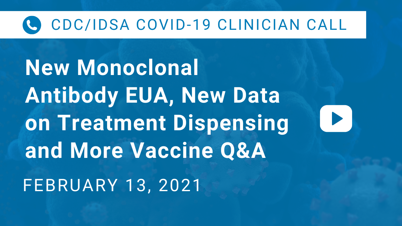 CDC/IDSA COVID-19 Clinician Call: New Monoclonal Antibody EUA, New Data on Treatment Dispensing and More Vaccine Q&A