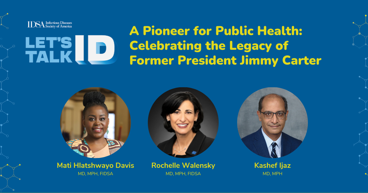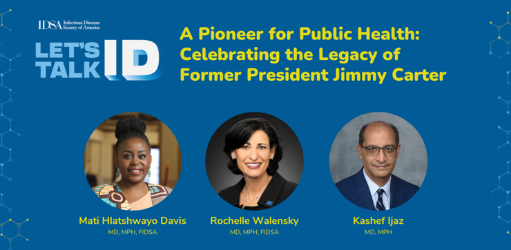 IDSA Board Member Mati Hlatshwayo Davis, MD, MPH, FIDSA, Former CDC Director Rochelle Walensky, MD, MPH, FIDSA, and VP of Health Programs at the Carter Center, Kashef Ijaz, MD, MPH, discuss the legacy of Former President Jimmy Carter, his work addressing neglected tropical diseases and the impact and value of public advocacy and political support for these diseases.