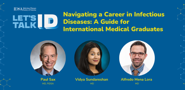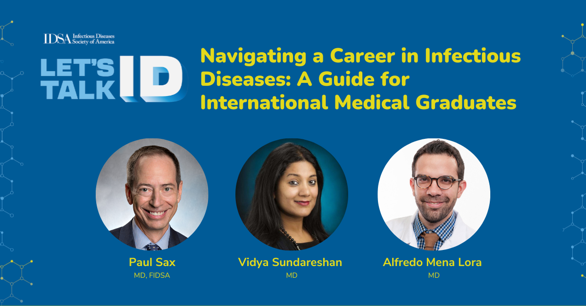 Paul Sax, MD, FIDSA, is joined by infectious diseases physicians and international medical graduates, Vidya Sundareshan, MD, and Alfredo Mena Lora, MD, FIDSA, to discuss how international medical graduates (IMGs) can pursue a career in infectious diseases. The trio discuss visa options, job search strategies, and how political change could impact the process.
