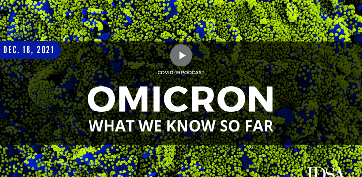 In this episode recorded on December 13th, IDSA President-Elect Carlos del Rio, MD, FIDSA and IDSA Public Health Committee Chair Julie Vaishampayan, MD, FIDSA share what the medical community knows thus far about the Omicron variant, including its impact on current COVID-19 treatments and why testing plays a key role.