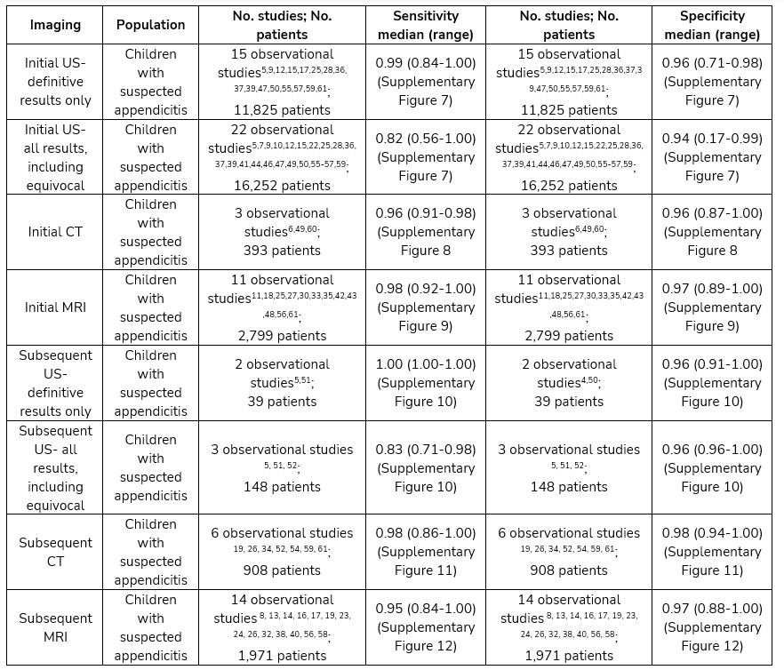 Summary of Evidence for Imaging Modalities Compared to Pathology for Diagnosing Acute Appendicitis in Adults